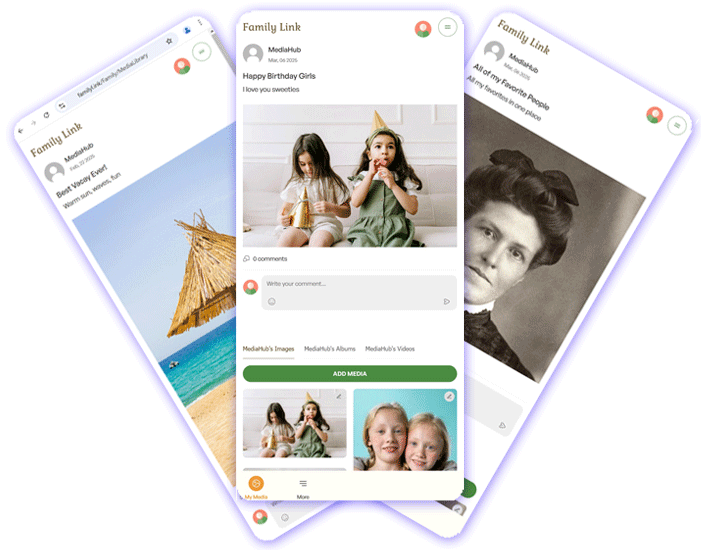 A secure hub for storing and sharing family photos, including vintage images..